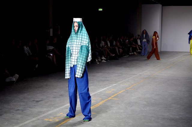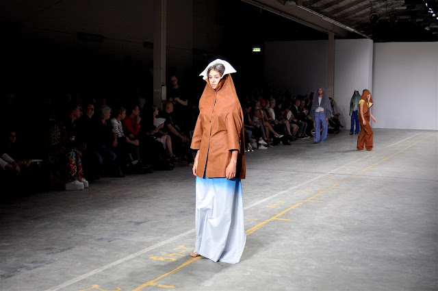 Sofya Samareva, one of the winners of designSUPERMARKET Prague is mostly known as a hat designer, at FASHIONCLASH Festival she presented a collection 'Medieval Pajamas', playing with shapes of hats while making a whole outfit. The result is a surprising play of silhouettes and shapes.