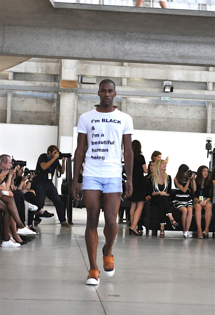 Despite the theatrical setting and the massage about diversity and equality the collection was mostly light and contemporary, highlighting Nuno Gama's signature menswear tailoring.