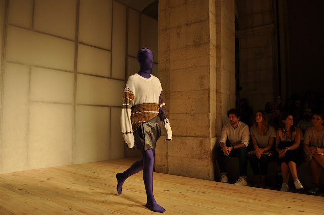 Ricardo Andrez once again presented a strong collection at ModaLisboa. Playing with themes like gender and race the models where made anonymous by wearing a head-to-toe bodysuits which came in various colors. By doing so the focus was on the clothing which one of the most exciting seen during the 47th edition of Moda Lisboa - Lisboa Fashion Week.